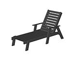 Recycled Earth-Friendly Oceanic Outdoor Chaise Lounge Chair w/ Arm Rests - Black